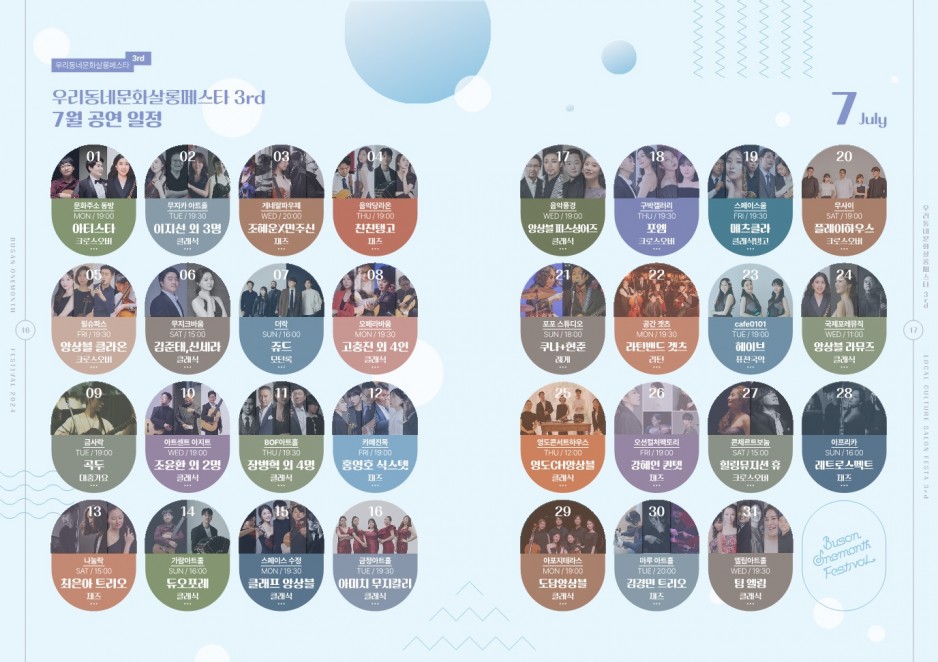 원먼스 페스티벌 우리동네문화살롱페스타3rd 공간별 연락처. (번호가 공연날짜와 동일)