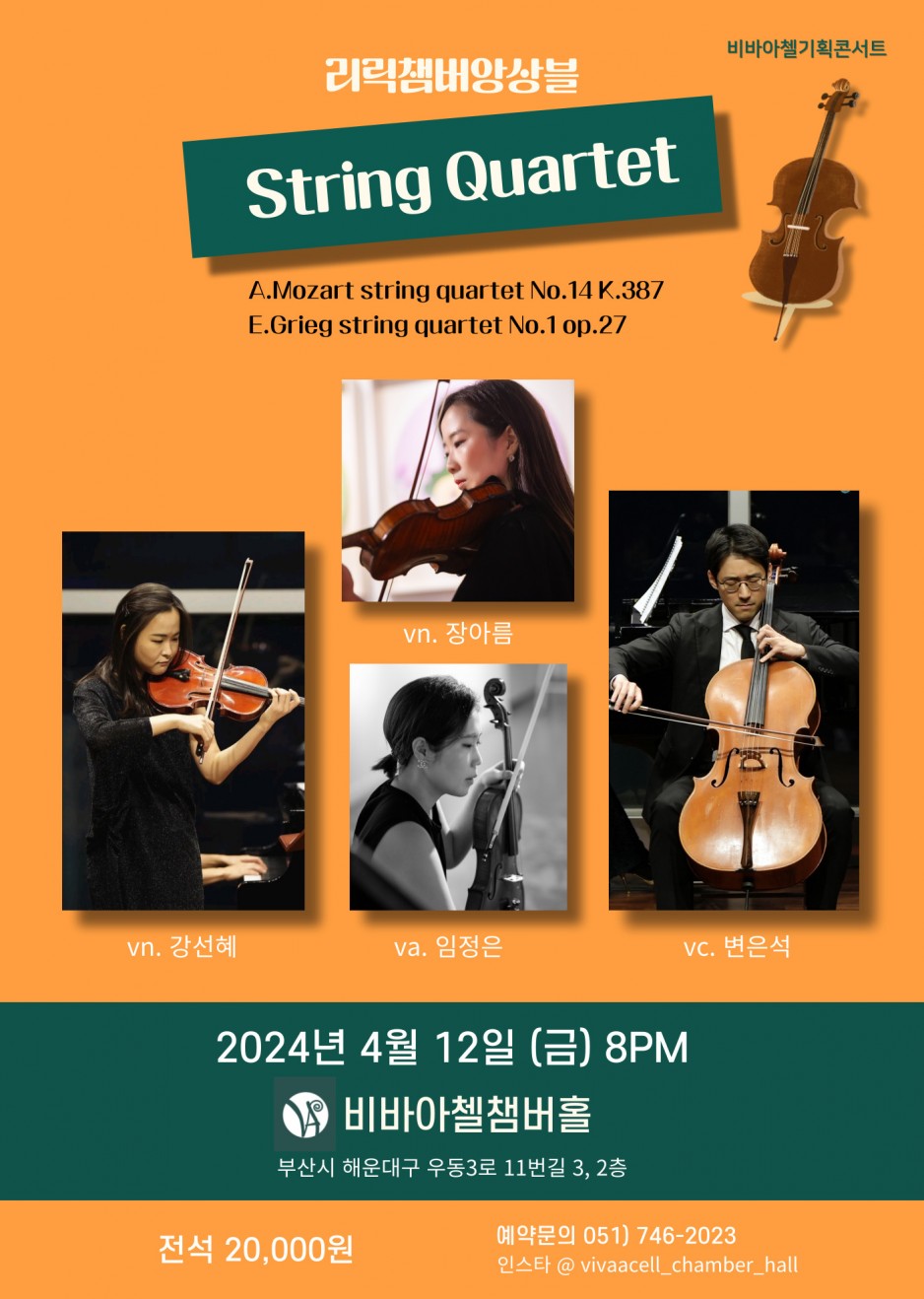 비바아첼챔버홀 기획콘서트: 리릭챔버앙상블 4월 12일 8시