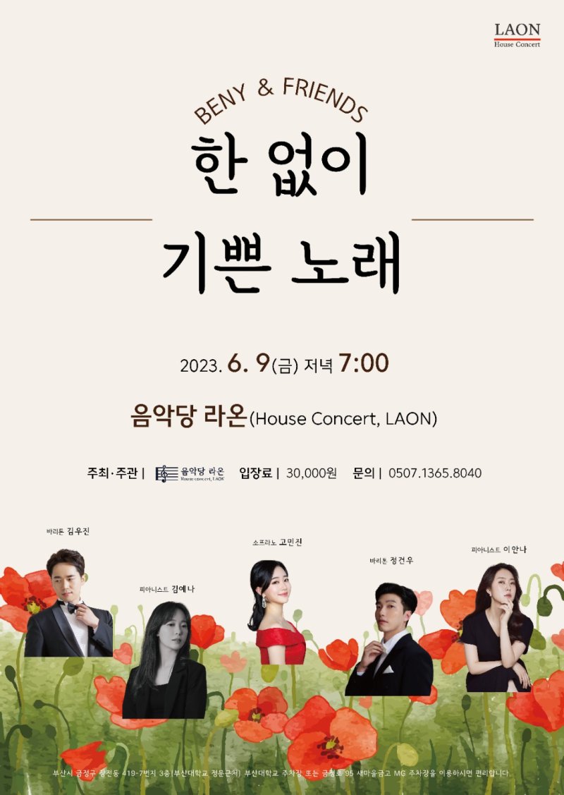베니앤프렌즈는 새롭고 재미있는 클래식 음악회를 만들고자 노력하는 청년 성악가들의 모임입니다. 클래식 음악을 통해 어떤 메시지를 전달하면 좋을 지, 어떻게 하면 클래식 음악이 많은 분들의 일상에 녹아들 수 있을지에 대해 늘 고민하고 있으며, 그 해답을 찾아가는 과정 속에서 만나는 많은 관객분들께 좋은 음악으로 큰 기쁨을 드리고 싶어 열심히 준비한 무대인만큼 많은 관심과 사랑 부탁드려요❤️