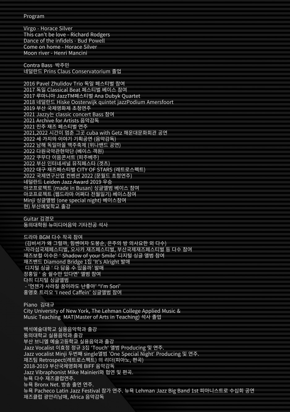 비바아첼 6월 16일 금요일 저녁 8시 김대규 재즈 트리오 와인콘서트