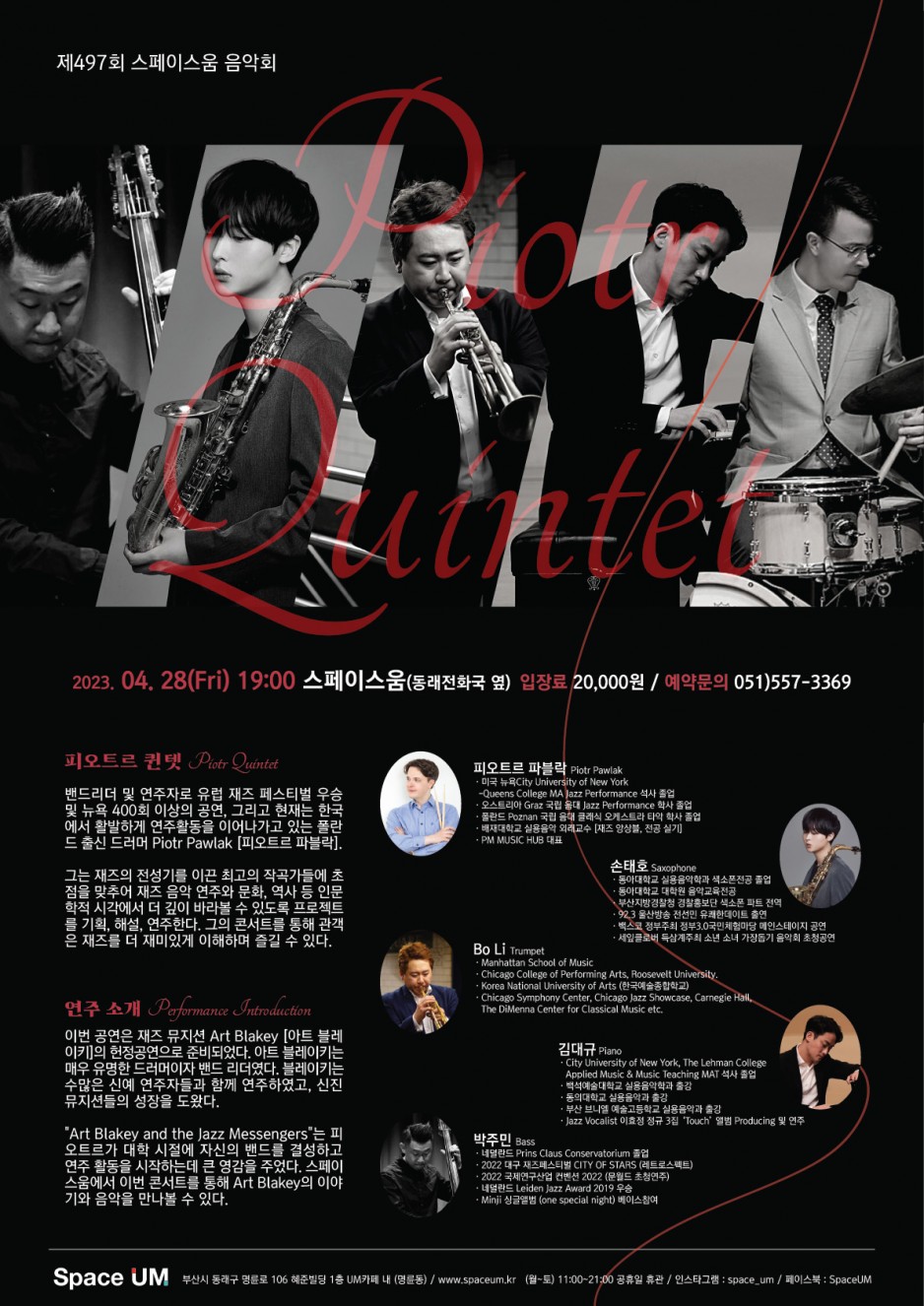 [스페이스움]피오르트 퀸텟 페이지 정보 작성자 스페이스움 댓글 0건 조회 238회 작성일 23-04-08 08:36 본문 밴드리더 및 연주자로 유럽 재즈 페스티벌우승의 실력파 목록 이전글[음악당라온]예빈의 봄 23.04.08 다음글[스페이스움]리베 아모르 콘서트 23.04.08 댓글목록 댓글목록 등록된 댓글이 없습니다.