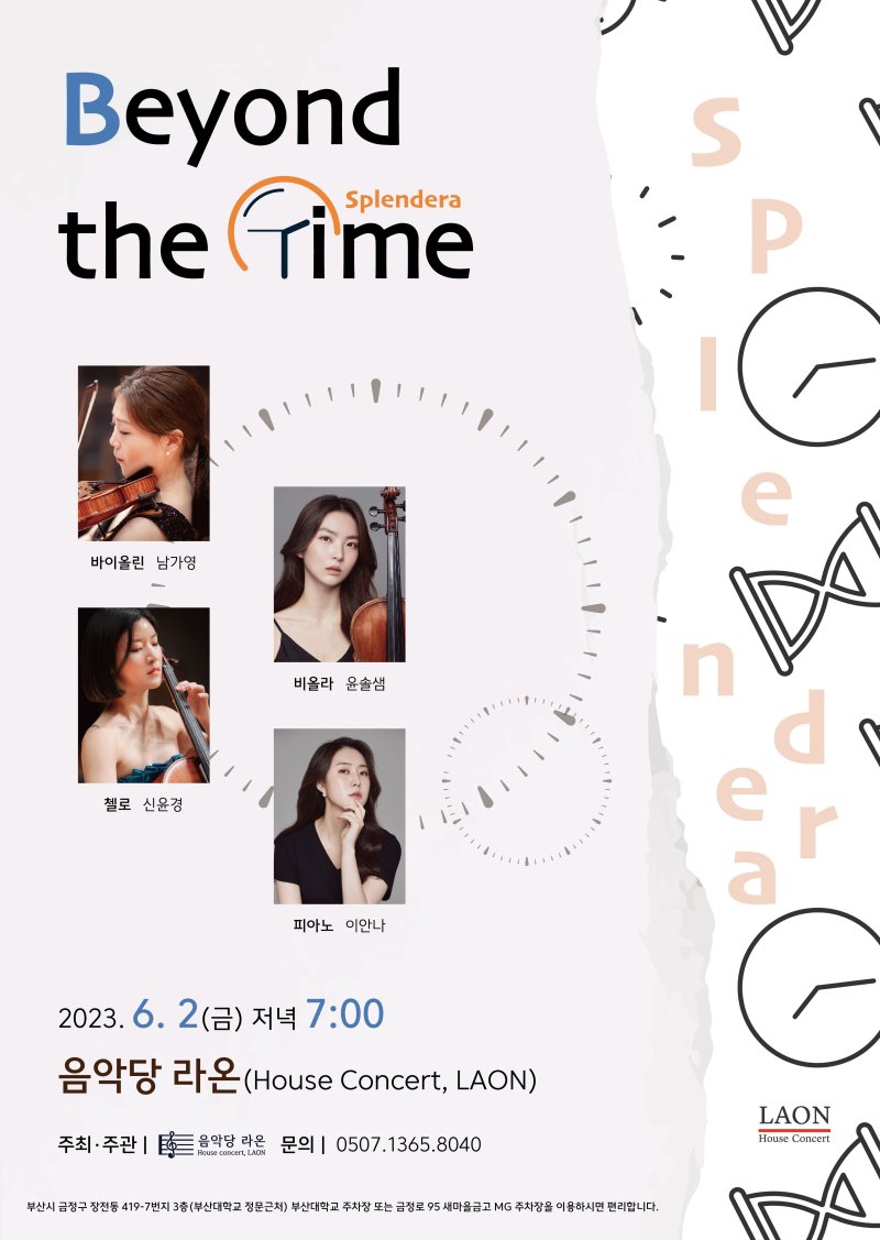 바이올린 남가영, 비올라 윤솔샘, 첼로 신윤경, 피아노 이안나로 구성된 피아노 콰르텟팀 스플렌데라는 경상 지역에서 활발하게 활동을 하고 있는데요, 다양한 시대의 음악을 편안하게 감상하실 수 있으니 많은 관심 부탁드립니다.